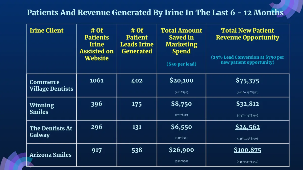 On Average, Irine Helps Practices Capture An Additional 5 To 10 Or More Patients Per Month From Within Their Website - Without Needing To Spend Any Additional Money On Marketing